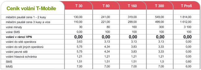 Tarif T30 je určený pro nenáročné telefonisty, vhodný hlavně pro volání v síti VPN, kde jsou tyto hovory zcela zdarma